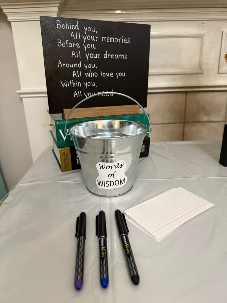 Nevertheless, we had a big time celebrating my grandson’s graduation. Several branches of family gathered for an informal meal and a few activities. One activity was to write words of wisdom, or well-wishes for the graduate.