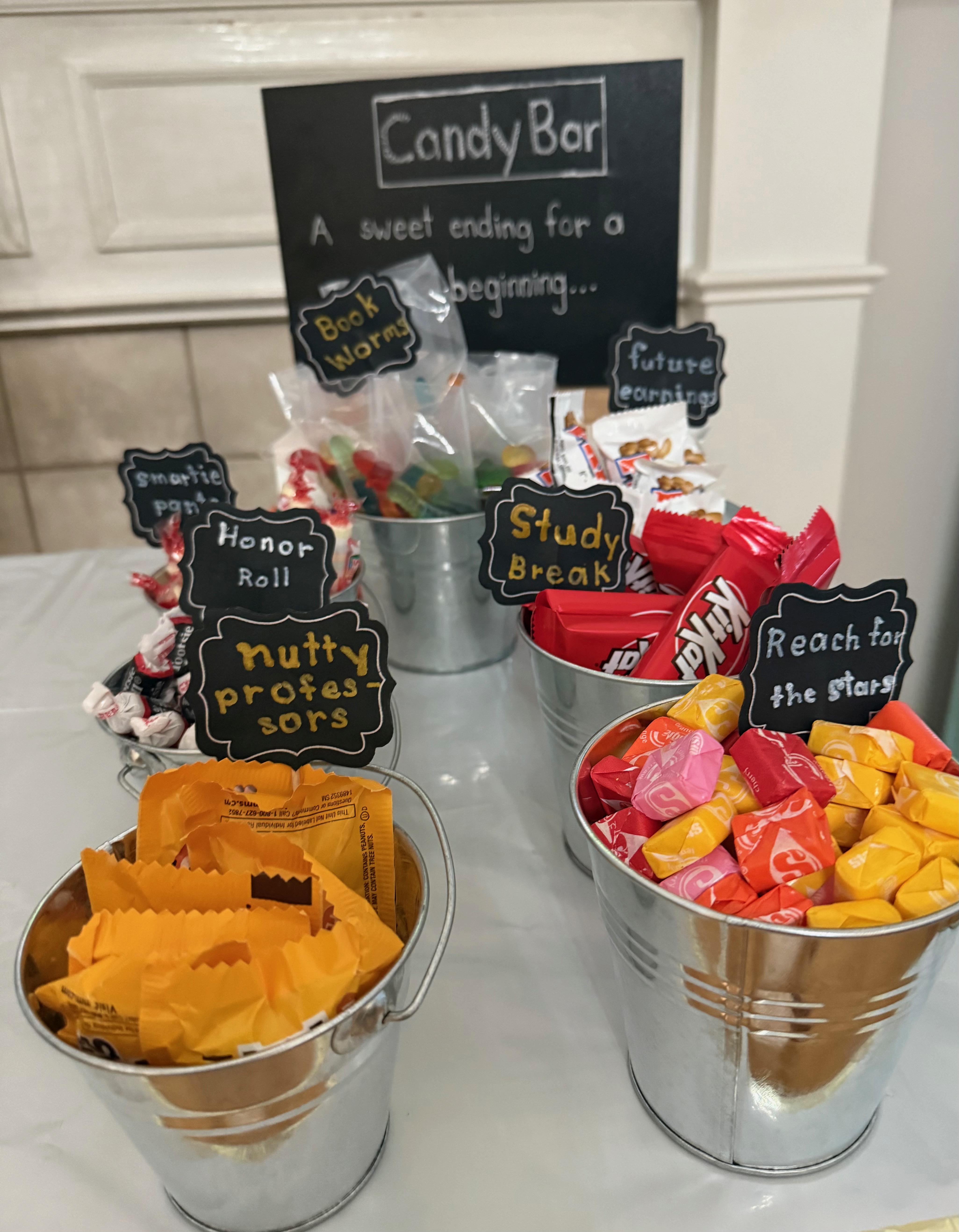 A Candy Bar to illustrate the “sweet ending.” Candy and Labels: Smarties: Smarty Pants; Tootsie Rolls: Honor Rolls; Peanut M&Ms: Nutty Professors; Pay Days: Student Loans; Starbursts: Reach for the Stars; Gummy Worms: Bookworms; Kit Kats: Study Break.